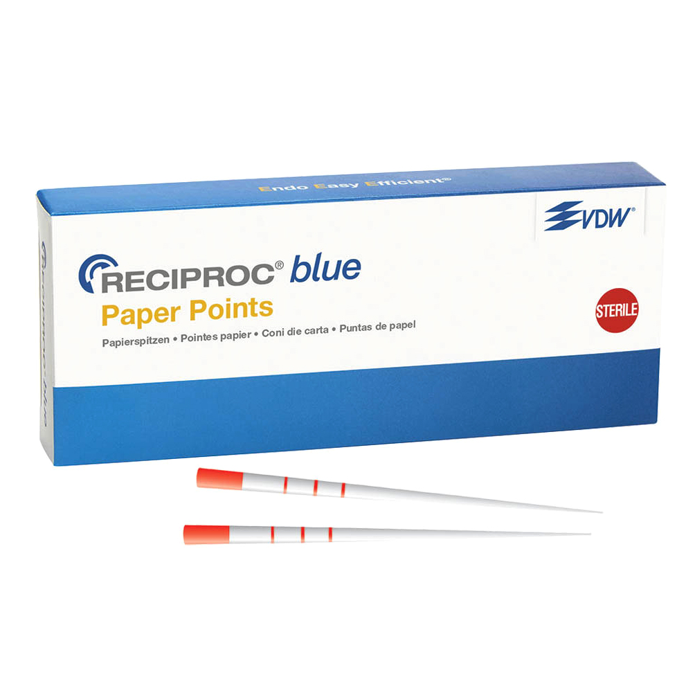 Coni di carta Reciproc Blue R25 lunghezza 29 mm , iso 25 , codice colore rosso , 180 punte sterili VDW V040259029025 CONI PUNTE CARTA PAPIER