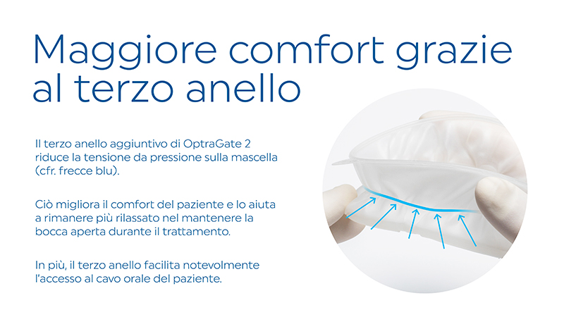 <b>Retrattore di labbra e guance monouso e privo di lattice (Latex free).</b> Si dimostra efficace in molteplici situazioni cliniche, consentendo un isolamento relativo affidabile. Il terzo anello aggiuntivo di OptraGate 2 riduce la tensione da pressione sulla mascella. Ciò migliora il comfort del paziente e lo aiuta a rimanere più rilassato nel mantenere la bocca aperta durante il trattamento. Il terzo anello facilita notevolmente l’accesso al cavo orale del paziente. Confortevole, ben tollerato e flessibile. <b>Efficace in molteplici situazioni cliniche:</b> • Restaurativa diretta • Odontoiatria digitale • Ortodonzia • Protesica • Diagnostica • Prevenzione • Sbiancamento • Odontoiatria pediatrica Confezione: 80 pz. misura small